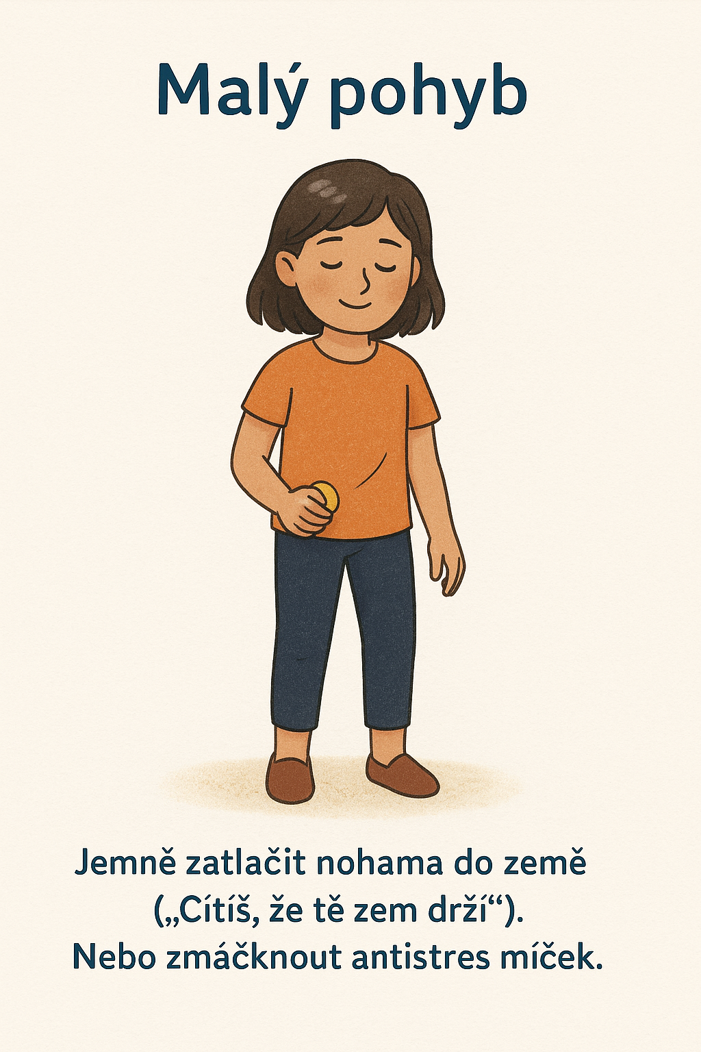 Ukotvení do přítomnosti (pojmenovat 3 věci, které vidí; 3 zvuky, které slyší).
